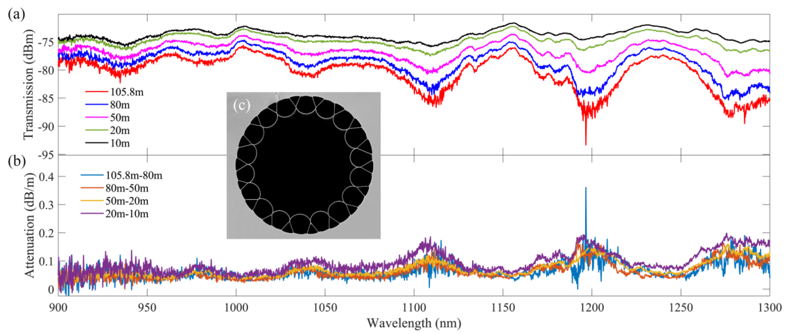 图1 MM-AR-HCF传输(a)及损耗(b)谱及SEM显微图(c)。