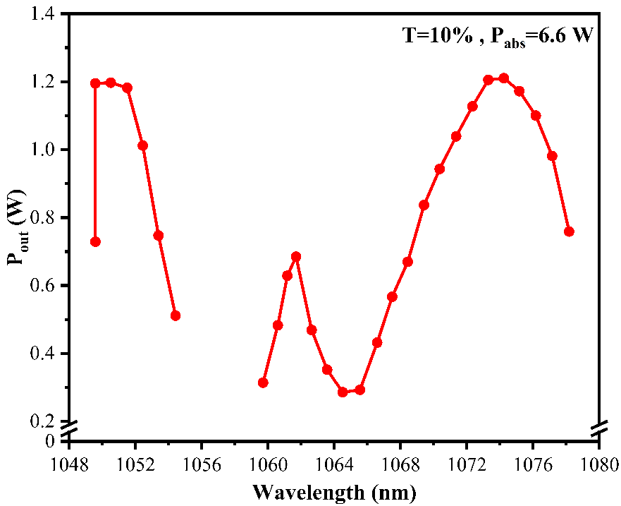 图3. 同一吸收泵浦功率下不同波长的输出功率