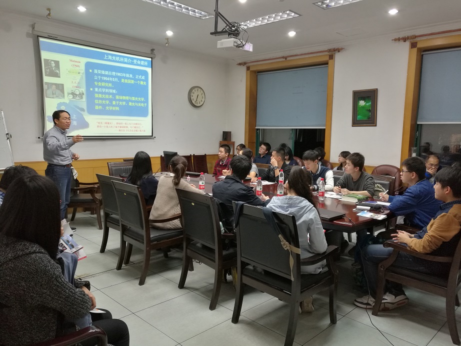 2016年,上海光机所共招收了近200名优秀本科生入选“尚光英才班”,为了让英才班学生进一步了解相关科研进展,培养科研兴趣和创新思维,上海光机所精心策划并举办了系列专家讲座,先后邀请强场激光物理国家重点实验室主任冷雨欣研究员作了题为“超强超短激光及其前沿应用研究”的报告、刘建胜研究员作了题为“激光尾场电子加速及应用”的报告,空间激光信息技术研究中心副主任周军研究员作了题为“激光技术——服务现实,照亮未来”的报告、孙建锋研究员作了题为“空间激光通信技术研究进展”的报告,中科院量子光学重点实验室韩申生研究员作了题为“鬼成像技术及其应用——从量子成像到信息论”的报告、屈求智副研究员作了题为“探索时空之秘——空间冷原子钟”的报告,高功率激光物理国家实验室刘德安研究员作了题为“高功率激光驱动器研究进展及其数字化技术”的报告。一系列紧跟科技前沿的学术报告,让同学们开阔了眼界并发散了思维。