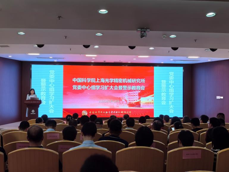 6月18日,中国科学院上海光学精密机械研究所召开中心组学习(扩大)会暨警示教育会,再次学习中央八项规定及其实施细则精神,深化以案说德、以案说纪、以案说法、以案说责,推动全所学习教育走深走实。所领导、党委委员、所务委员、纪委委员、科研大部(实验室)及二级单元负责人、职能与支撑部门负责人、群团组织负责人、支部书记、纪检委员、全体正高人员、科研财务助理等近200人参加会议。会议由党委书记陈卫标主持。