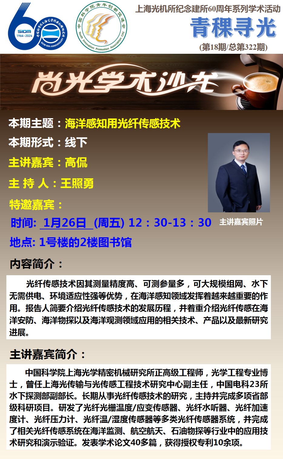 光纤传感技术因其测量精度高、可测参量多,可大规模组网、水下无需供电、环境适应性强等优势,在海洋感知领域发挥着越来越重要的作用。报告人简要介绍光纤传感技术的发展历程,并着重介绍光纤传感在海洋安防、海洋物探以及海洋观测领域应用的相关技术、产品以及最新研究进展。