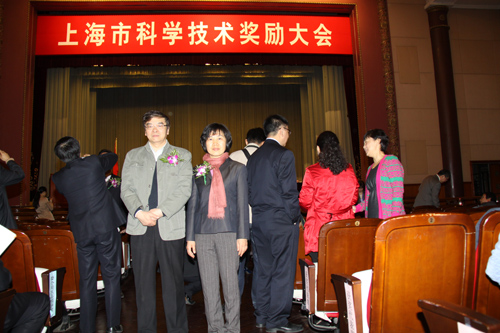 获奖项目代表梁晓燕研究员、陆海鹤研究员参加2012年度上海市科技奖励颁奖大会