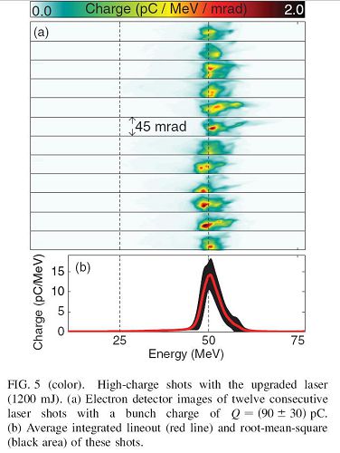 对于电子束的潜在应用(例如基于波荡器的自由电子激光),电子束单位能量内的电量是一个极为重要的物理参数。在本实验中,电子束电量最大可达到100pC同时电子束能散度低,因此单位能量内的电量大大提高。尽管目前电子束的能量受到实验装置的限制,为150-200MeV。但是,若用同样的方式,极有希望产生数百MeV的且相对能散度小于1%的高能相对论电子束。(强场激光物理国家重点实验室供稿)