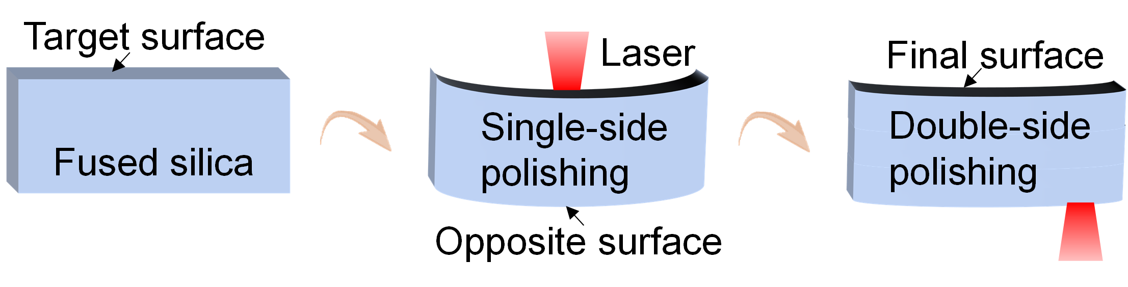 近期,中国科学院上海光学精密机械研究所高功率激光元件技术与工程部魏朝阳研究员团队在激光高精度抛光机理及工艺研究中取得新进展。研究揭示了激光抛光后面形恶化的机理,并提出了激光双面抛光工艺提升加工精度。相关研究成果以“Formation mechanism and suppression method of surface deterioration in CO2 laser polishing for fused silica”为题发表于Optics & Laser Technology。