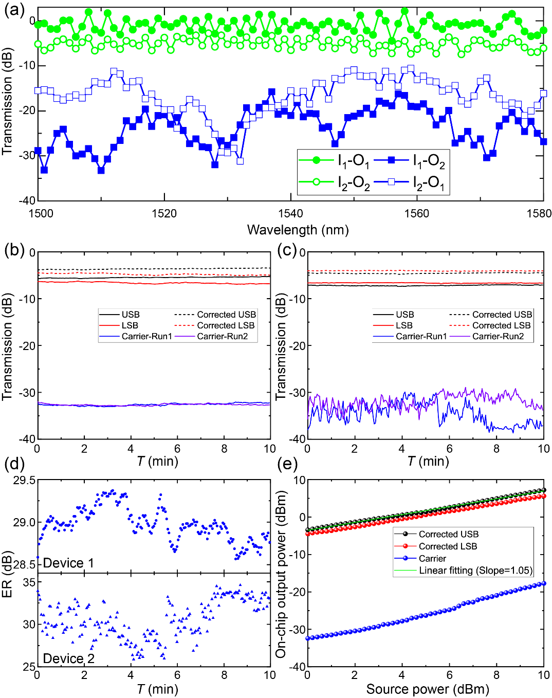 图1 集成器件的消光比实验表征结果