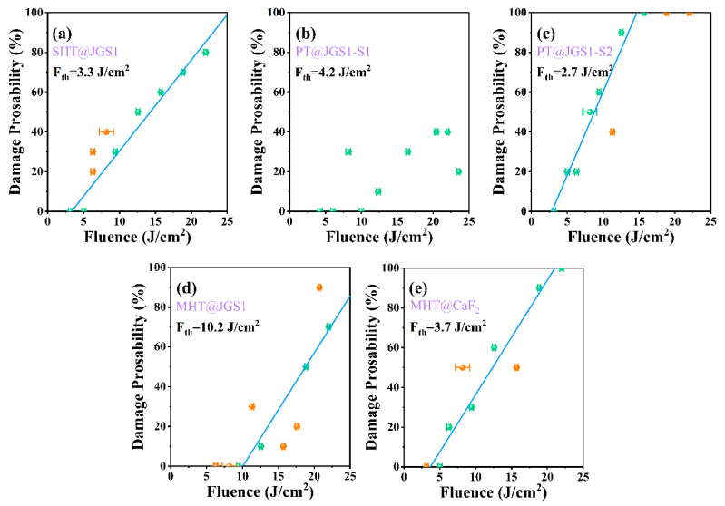 图1. 2.1 μm下中红外增透薄膜与分光薄膜的损伤阈值