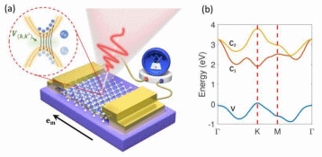 图1. 少周期激光脉冲驱动单层MoS2产生定向光电流的原理示意图