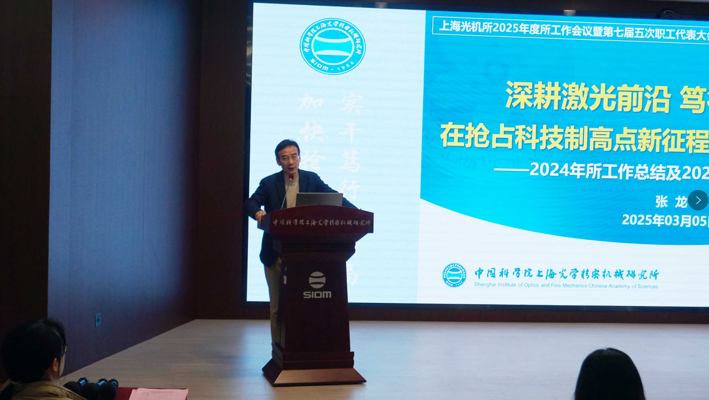 张龙所长作《在抢占科技制高点新征程中展现上光新作为》研究所年度工作报告,全面总结了2024年全所取得的系列科研成果和各项工作成效;分析了我所在科研布局、体制机制、队伍能力等方面存在的差距和不足,提出了2025年工作部署。他强调,全所上下要以加快抢占激光领域科技制高点为核心要务,持续狠抓各项工作部署的落地见效,全力争取并高质量完成各项重大科技任务,深入开展“十五五”科技发展规划论证,围绕国家重大需求和我所使命导向,擘画好新甲子创新发展蓝图。