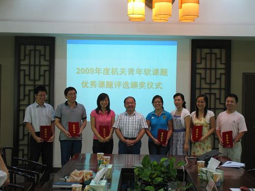 最终,经过专家的评选,《PPT制作培训讲座与所公共模板设计》(吴燕华)、《博士毕业生引进新模式可行性分析》(任海峰)、《国内外大科学工程项目管理方法调研》(屈炜等)、《科研管理流程的规范与实践》(何 嘉、沈炳辉)、《关于匹配研究室可调控资源的一些思考》(胡卫芳、王陈燕)、《所研究生招生宣传工作有效模式的探讨》(金黎慧)等6项课题获得“2009年度机关青年软课题活动优秀奖”。朱健强所长为获奖项目进行了颁奖。