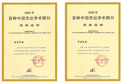 2009年11月27日,中国科学技术信息研究所召开的2008年中国科技论文统计结果发布会上公布了第九届“中国百种杰出学术期刊”名单。由上海光机所主办的《光学学报》、《中国激光》再次入选2008年“中国百种杰出学术期刊”。