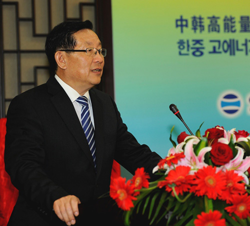 李周浩在致辞中指出,中韩联合研究中心自1998年成立以来,经过十多年的积极努力,对韩、中两国科技发展做出了一定贡献。韩方主管单位韩国原子能研究所是拥有50多年历史的优秀研究所,在原子能领域取得了一些世界级的成果,得到同行的高度评价。上海光机所在等离子体、激光核聚变等方面取得许多优秀成果,也在世界享有盛誉。李周浩表示,对中韩联合研究中心未来发展非常期待,希望通过双方努力,在科研信息资源共享、人员交流方面加强合作,将中韩联合研究中心建设成为韩、中两国科学技术合作的典范。