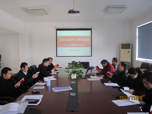 11月26日上午,上海光机所召开学习贯彻党的十八大精神动员会,党委书记、副所长邵建达和全所党支部书记出席会议,会议由综合管理处处长吉峻主持。