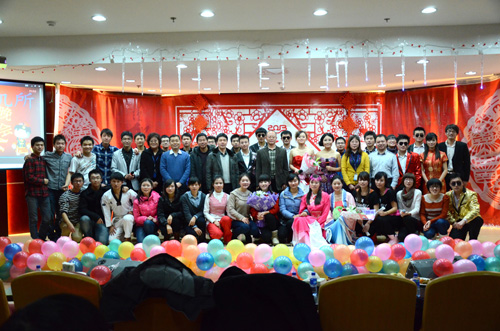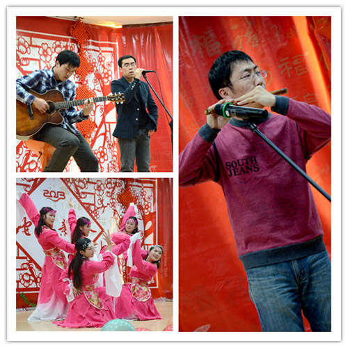 晚会现场,李儒新所长首先通过视频对全体职工、研究生发表了热情洋溢的新年祝辞,祝愿大家新的一年身体健康,再创佳绩。晚会首先在妇委推选的《咏春》中拉开序幕。温婉含蓄,柔美动人的舞蹈让大家彷佛置身世外,穿越回到二三十年代的风情上海。接着,来自兄弟单位的硅酸盐所带来的相声《探亲》述说了探亲趣事,惊喜连连;任海峰夫妇的歌曲《你最珍贵》甜蜜幸福,感人至深;《惊鸿舞》柔美婉约,裙裾飞扬;竹笛独奏《牧民新歌》清新婉转,带我们领略了草原风光;小品《赤壁歪传》欢乐搞笑,掌声不断;大合唱《乡愁四韵》回音流雪,仿佛有一丝淡淡的乡愁萦绕心头;跆拳道表演《武道风云》刚柔并济,展示了力量之美;古典舞《女儿情》展示了美丽少女的柔美与娇俏,温婉动人;工会推选的俞敦和老师带来的歌曲《风往北吹》《你是我的眼》引爆全场,脍炙人口的旋律,丰富的舞台经验,与台下观众的完美互动,看得大家眼花缭乱,掌声不断;由联合室带来的今年最火爆的《江南style》动感欢乐,将晚会推向高潮!