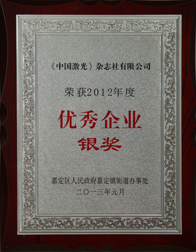 1月22日,在嘉定区嘉定镇街道企业家联谊会上,《中国激光》杂志社荣获上海市嘉定区嘉定镇街道优秀企业银奖,这是《中国激光》杂志社成立三年以来首次获得此项荣誉。
