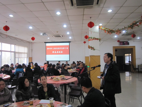 1月30日下午,2013年上海光机所党群干部新春茶话会在食堂二楼举行,所领导邵建达、祝如荣和党委委员,研究室主任,机关职能部门处长,党支部书记、副书记,所工会委员,分工会主席、副主席,所团委委员,团支部书记,所妇委委员,女工委员等共70余人出席会议。会议由综合管理处处长、工会主席吉峻主持。