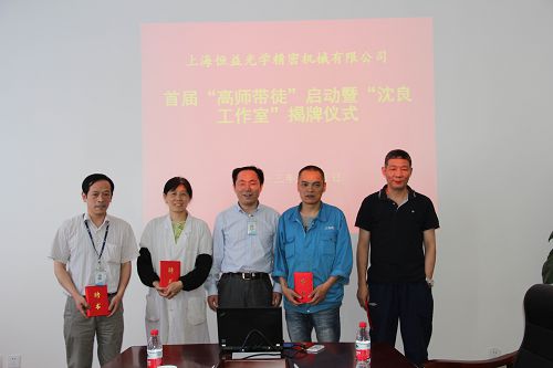 6月5日,上海光机所恒益公司首届“高师带徒”启动暨“沈良工作室”揭牌仪式在公司大会议室举行。上海光机所党委书记、副所长邵建达出席,并为首届高师带徒活动的四位高师颁发了聘用证书,同时为“沈良工作室”进行了揭牌。