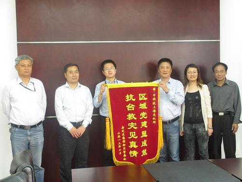 当本所园区(西区)积水退去的同时,本所西侧清水路及周边小区仍有大量积水。此时,我所积极配合菊园新区排涝工作,帮助开展清水路积水排水,确保了清水路小学学生和所在地区居民学习生活迅速恢复正常。10月12日,菊园新区政府特向我所赠送锦旗“区域党建显成效,抗台救灾见真情”。