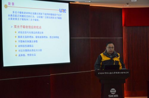在14日的学术交流论坛上,上海光机所党委书记邵建达、副所长祝如荣出席了开幕式,邵建达和李伟在开幕式上分别致辞,回顾了两个单位悠久的合作历史,对青年科技人员在今后加强合作和竞争、勇攀科技高峰提出了期望。随后,两所青年科技骨干介绍了在相关领域的研究成果,共有15个学术报告,包括2个特邀报告(激光聚变研究中心赵阳:“强耦合温稠密等离子体吸收边光谱实验研究”和上海光机所曾志男:“全相干超快x射线源”)。除此以外还有9个张贴报告。报告内容广泛,涉及“激光尾场电子加速器相关的磁场诊断及新的锁相机制的研究”、“自由面光学元件检测”、“千瓦级全光纤激光器研究”、“中红外玻璃光纤及模块化研究”等方面,得到了参会人员的广泛关注和热烈讨论。15日,激光聚变研究中心一行还参观了神光II激光装置。