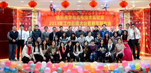 1月11日,信息光学与光电技术实验室举办了2013年度工作总结大会暨新年联欢会和新年茶话会。实验室职工、研究生、离退休老同志、所内相关实验室和职能部门代表等130余人欢聚一堂,总结工作,共贺新春。