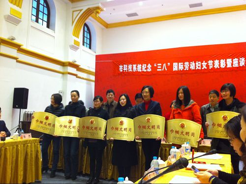 3月6日上午,上海市科技妇委纪念“三八”国际劳动妇女节表彰暨座谈会在上海科学会堂海洋能厅隆重举行,会上表彰了2013年度上海市巾帼建功文明岗、上海市巾帼建功标兵等。上海光机所激光玻璃和特种光纤研究组荣获2013年度上海市巾帼建功文明岗荣誉称号。
