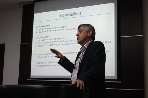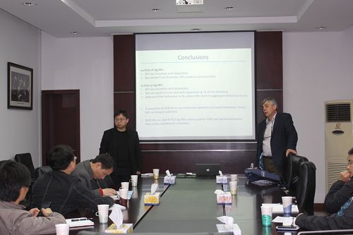 在学术交流上,青促会小组王俊介绍了Trinity College Dublin的发展历史以及Prof. James Lunney在研究工作上的一些趣事.随后,James Lunney教授作了题为“Deposition of nanoparticle metal films using nanosecond and femtosecond lasers”的报告,与会人员就该研究成果进行了热烈的交流和探讨。学术报告结束后,Prof. James Lunney 和Prof. Hongzhou Zhang在青促会成员的带领下,参观了高功率激光物理联合实验室、强场激光物理国家重点实验室和中科院强激光材料重点实验室,双方进行了深入的交流,为日后可能的国际合作做了有效的铺垫。