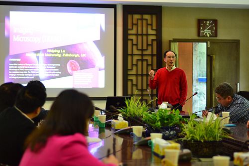 在交流会上,Weiping Lu作了题为“Translation microscopy method for super resolution imaging”的报告,随后青促会王俊研究员作了题为“Two-dimensional semiconductors for versatile photonic applications”的报告,与会人员进行了热烈的讨论。
