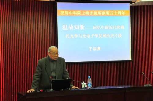 5月5日下午,干福熹院士应邀在上海光机所第六期“所庆系列报告会”作报告。干福熹院士,曾任上海光机所所长、中科院技术科学部委员、上海市科协副主席、中国硅酸盐学会副理事长。是我国激光技术的开拓者之一,也是我国数字光盘存储技术的最早开拓和倡导者。全所200余名科研人员及研究生听取了报告。党委书记、副所长邵建达出席并主持了报告会。