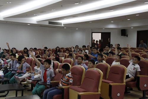 齐红基研究员的科普报告围绕“光”展开,“光”有哪些特性,生活中的“光”是如何被开发利用的,哪些是与“光”相关的常用家电和设备,他利用多彩的“光”在生活中产生的现象及日常生活中遇到的生动实例向小朋友们提出了许多“为什么?”。现场小朋友们踊跃发言,互动气氛浓烈,场面活跃。通过科普讲座,小朋友学到很多科学知识,同时也启发了职工家长们如何引导培养孩子们的科学兴趣。
