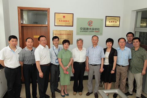 5月29日上午,中国期刊协会石峰会长、中宣部出版局刘建生副局长等一行七人莅临中科院上海光机所调研中国激光杂志社期刊出版工作,上海光机所祝如荣副所长、中国激光杂志社总经理杨蕾分别介绍了上海光机所的光学研究概况及中国激光杂志社近十年来在体制改革、数字化出版、国际化发展方面取得的一系列进展。