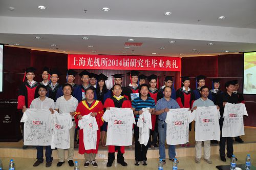 2014年6月6日下午,上海光机所学位评定委员会经过初审,建议中国科学院大学学位评定委员会授予上海光机所53名研究生博士学位、52名研究生硕士学位。下午三点整,在雄壮的国歌声中,2014届研究生毕业典礼在多功能厅隆重举行。上海光机所所长李儒新,党委书记、副所长邵建达,副所长陈卫标,学位委员会主席朱健强,闽能集团副总裁王雄及部分导师出席典礼。典礼由研究生部主任韩申生主持。
