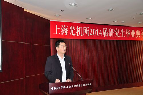 颁奖典礼之后,李儒新向全体毕业生作毕业致辞。他说,同学们把人生最美好的青春年华留在了上海光机所,希望同学们毕业以后,继承中国科学院精神和上海光机所所风,“要甘于平淡,不要沦为平庸;既要仰望星空,又要脚踏实地;敢于好高骛远,善于实事求是;牢记成功来自努力,智慧创造奇迹。”在投身国家发展建设的伟大实践中贡献聪明才智,在实现国家和民族振兴的历史进程中谱写美好人生。最后,李儒新深情的讲到:“从今天起,‘追光逐梦’的精神将载着你们继续前行,无论你们在哪里,你们站立的地方就是你的上光所。上海光机所永远是你们的忠实朋友,永远是你们的坚强后盾!”