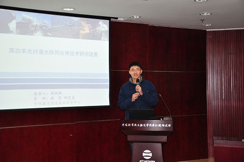 本次论坛邀请了获得2014年度“中国科学院大学国家奖学金”、“宝钢优秀学生奖学金”,来自空间激光信息技术研究中心2012级博士研究生杨依枫和获得2014年度“中国科学院大学国家奖学金”、“大恒光学奖学金特别奖”,来自强场激光物理国家重点实验室2012级博士研究生时银分别作了题为“高功率光纤激光阵列合束技术研究进展”和“基于激光驱动等离子体的辐射光源研究”的报告。杨依枫的报告主要介绍了国内外激光合成技术的最新成果,并深入浅出地介绍了他所在课题组在被动相干合成和光谱合成方面的最新工作。时银的报告主要介绍了基于相对论激光与等离子相互作用过程进行相关辐射光源的研究。此外,他还与大家分享了他的科研心得,即抽象思考的必要性和共同探索未知世界的勇气。