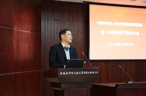 李儒新所长在发言中首先感谢各级领导和全所职工的信任。他表示,上海光机所经过50年的发展,几代人的奋斗,为我国科技发展做出了突出贡献,新一届领导班子深感责任重大,将与全所职工一起,团结奋进,继往开来,抓住中国科学院实施“率先行动”计划和上海市建设具有全球影响力的科技创新中心两个发展机遇,把上海光机所建设成为世界级激光科技研究中心。