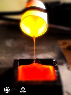 激光钕玻璃高温下呈液态,镜头定格在浇铸的一瞬间
