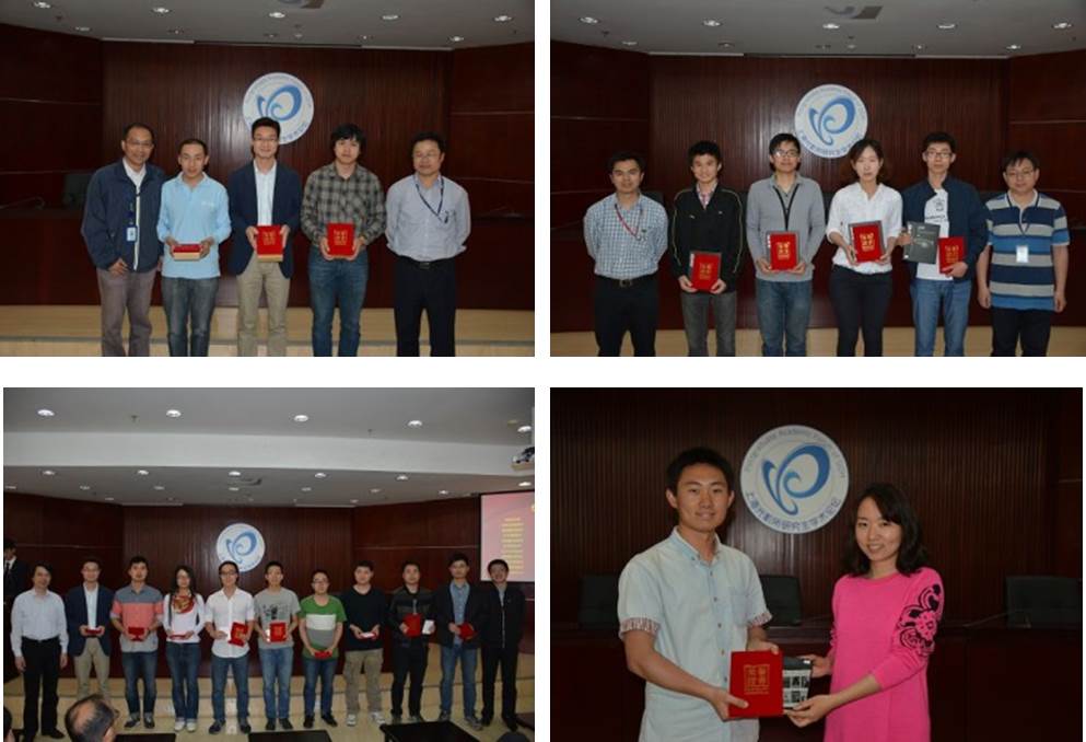 会上公布了本次摄影大赛的获奖作品及其创作者,李儒新及各位赛事评委给获奖者颁发了荣誉证书和奖品。本次大赛一等奖1名:《飞秒走丝:我们的奋斗》(翟凯旋);二等奖3名:《玻璃与光纤》(刘双)、视频《飞秒激光在氩气中诱导人工降雪》(刘永宏)、《基于达曼光栅的三维轮廓扫描仪》(韦盛斌);三等奖5名:《飞秒激光诱导雪花形成》(鞠晶晶)、《月心》(周琼)、《激光钕玻璃浇铸》(王朋)、视频《灰度刻写》(丁晨良)和《光学相干层析成像仪》(潘柳华);优秀奖10名:《影引》(步扬)、《东海黄昏中的实验现场场景》(陈明亮)、《流光溢彩的战国琉璃珠》(董俊卿)、《地球的眼睛》(郁敏捷)、《微笑的高阶模》(邹琳)、《飞秒强激光诱导微型龙卷风及成雪》(鞠晶晶)、《激光钕玻璃-从平凡到伟大》(林治全)、《光机所的“尺度”》(周奇军)、《蜻蜓质子照像》(王文鹏)和《Color》(王鹏);最佳人气奖1名《激光扫描三维成像》(罗远)。这些融合科学与艺术之美的作品内容涵盖飞秒激光、玻璃材料、光谱计算、质子照相等学科前沿方面。所有参赛作品的集合也直观地展示了上海光机所承担的国际前沿科研成果。