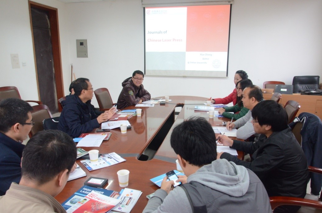 杨蕾总经理带队访问西安交通大学时,受到了《中国激光》编委张镇西教授和《光学学报》编委张淳民教授的热情接待,并与生命科学与技术学院副院长徐峰教授、馥莉食品装备工程与科学学院副院长赵宏教授、机械工程学院彭年才教授、电子与信息工程学院陈烽教授等进行了交流。专家们对《中国激光》和《光学学报》有着深厚的感情,他们认为在科研工作中两刊给予了研究人员很大帮助。张镇西教授等高度赞扬了杂志社审时度势创办英文刊的策略,并表达了对杂志社继续发展的由衷祝愿。