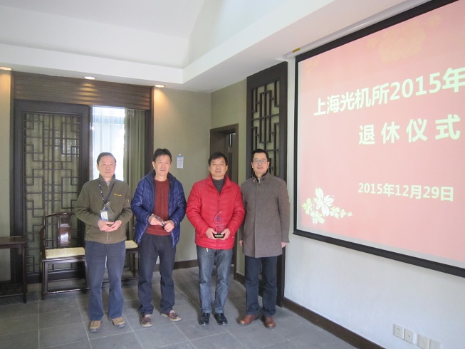 12月29日上午,上海光机所2015年度职工退休仪式在溢智厅举行,李儒新所长、2015年度光荣退休的17位职工和相关职能部门负责人等出席仪式。仪式由所工会主席、退管会副主任吉峻主持。