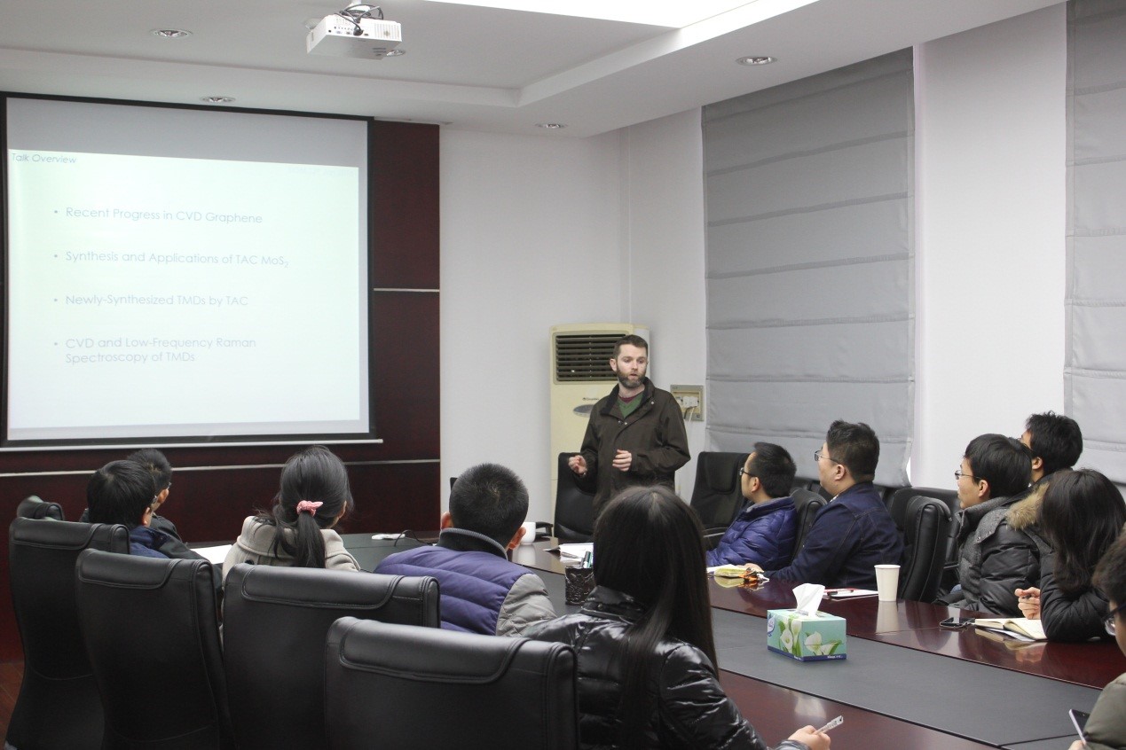 1月12日,爱尔兰都柏林圣三一大学(Trinity College Dublin)自适应纳米结构与纳米器件研究中心Niall McEvoy博士来所进行学术交流,并作了题为“Synthesis and Applications of CVD-Grown 2D Materials”的报告,全所30余位职工和研究生参加了报告会。