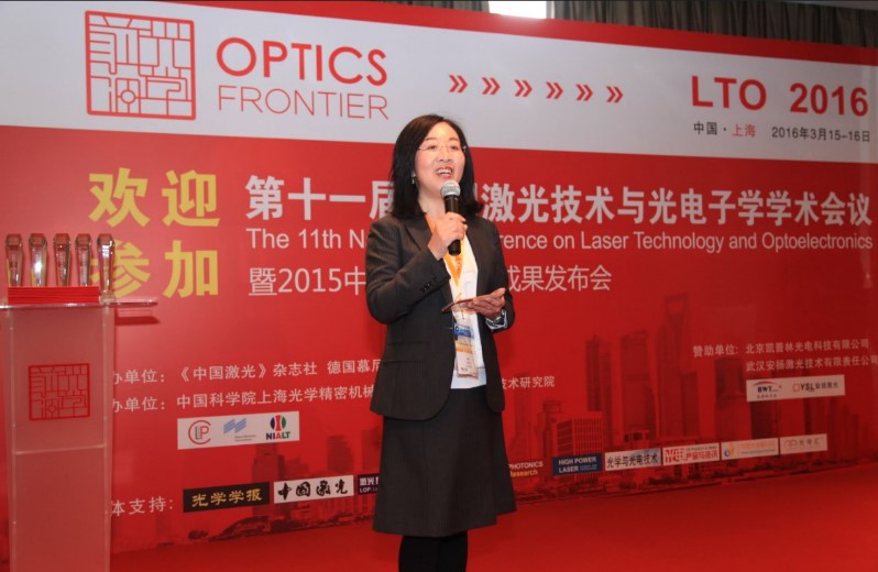 中国激光杂志社董事长兼总经理杨蕾女士主持大会开幕式
