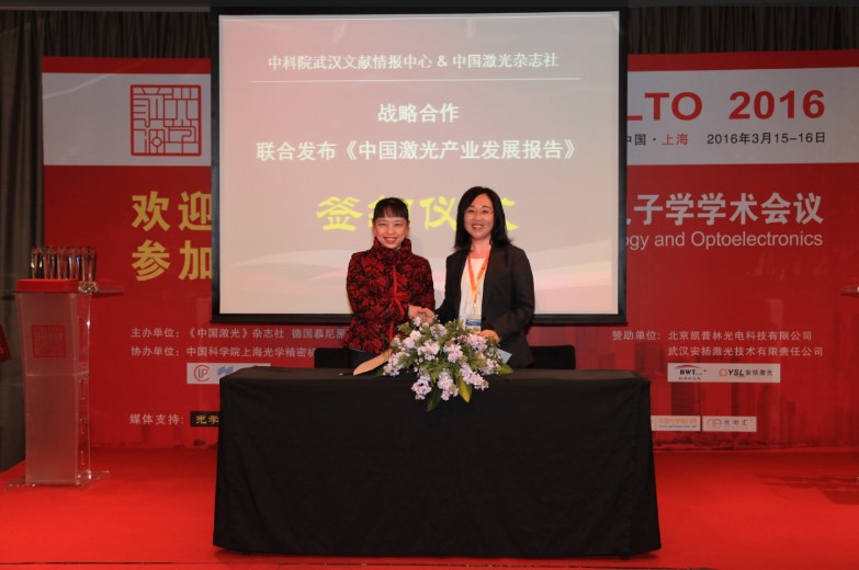 大会期间,中国激光杂志社和中科院武汉文献情报中心举行了战略合作签约仪式,这是中国激光杂志社联手文献研究机构,为光学界提供知识服务的又一重大举措。开幕式上,两家联合发布的《2016中国激光产业发展报告》引起参会代表浓厚兴趣。
