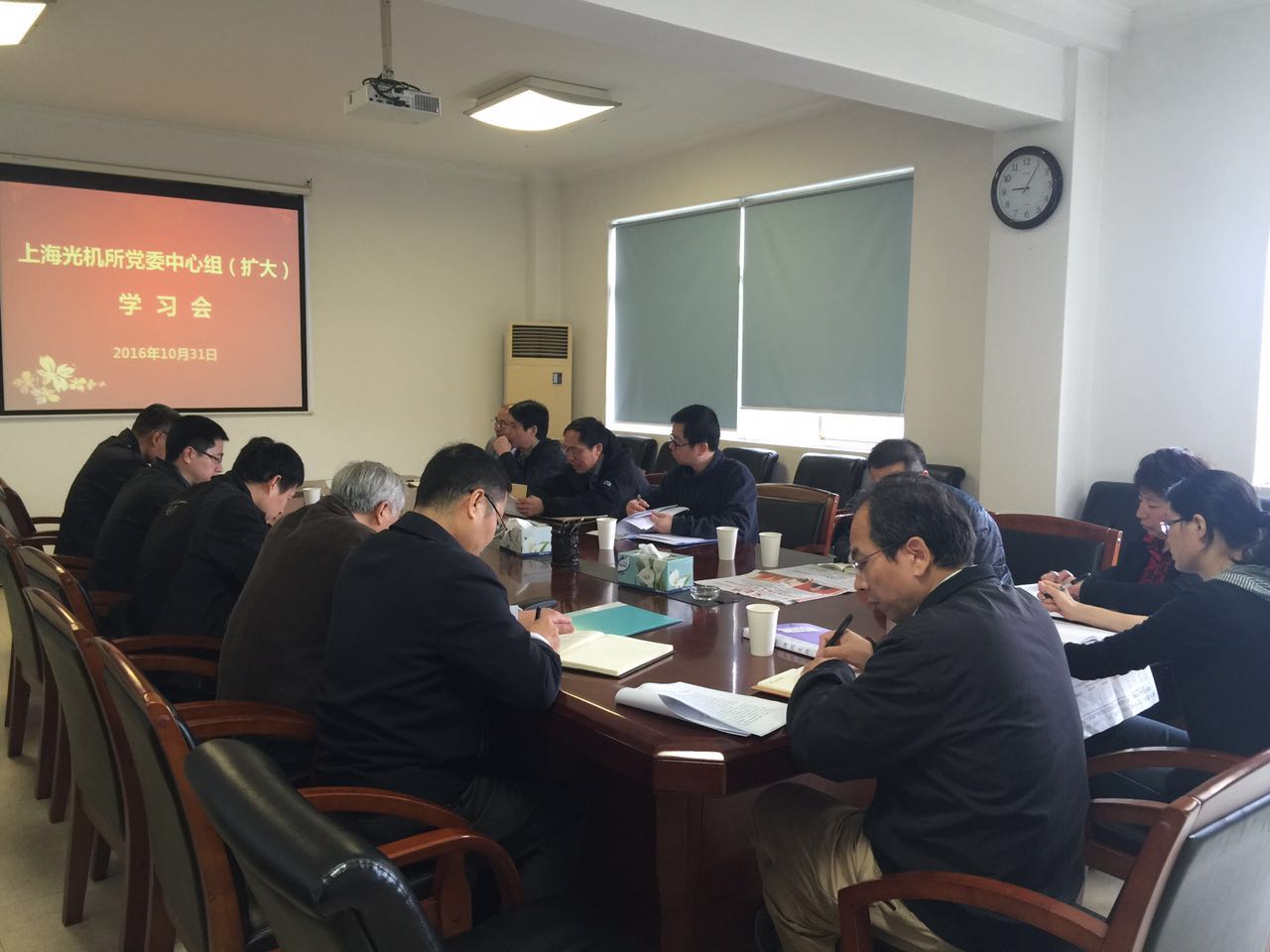10月31日,上海光机所党委中心组(扩大)学习研讨会在1号楼512会议室举行,所领导李儒新、邵建达、陈卫标和党委委员、机关职能部门党员负责人等13位同志出席。党委书记邵建达主持会议。学习会的主题是:传达学习党的十八届六中全会精神。