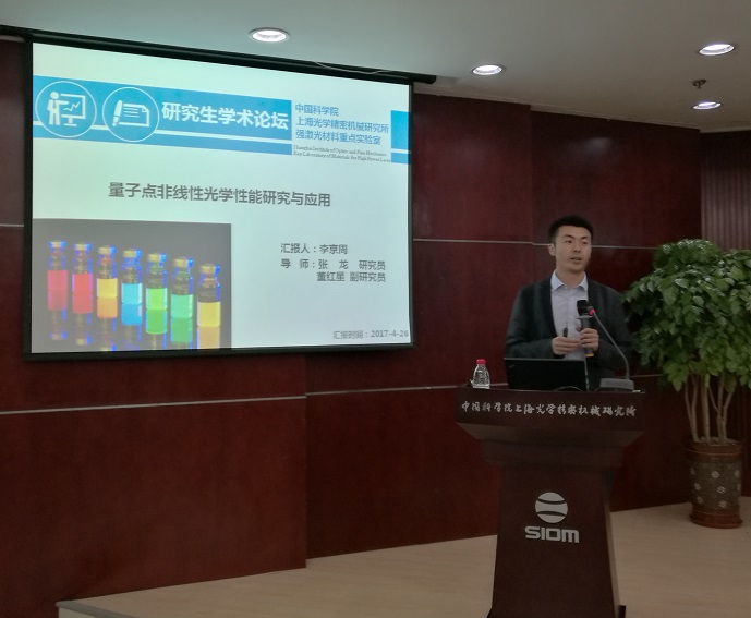4月26日下午,上海光机所第二十三期“研究生学术论坛”在多功能厅举行。全所近100余名研究生和职工参加了本期论坛。本期论坛由研究生胡旭主持。