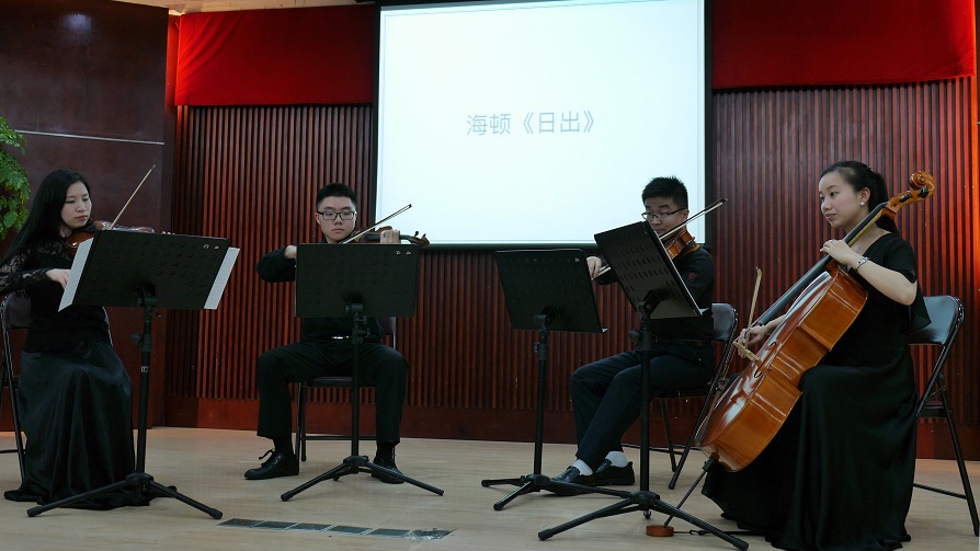 5月24日,上海光机所邀请来自上海城市交响乐团的黄曦、朱冰倩、姚晨易、翁顺砚,及龙猫乐团常任指挥葛维岳在西区多功能厅举行了春夏琴韵弦乐四重奏音乐会。上海光机所150余名职工和研究生参加了本次活动。