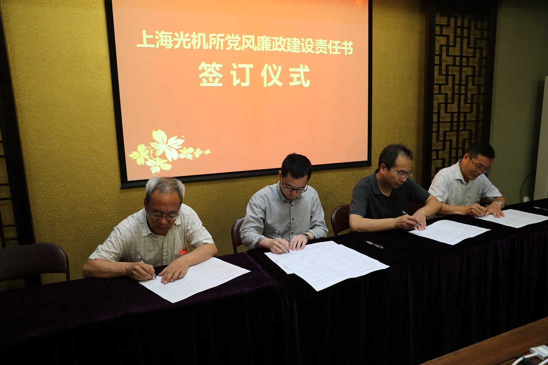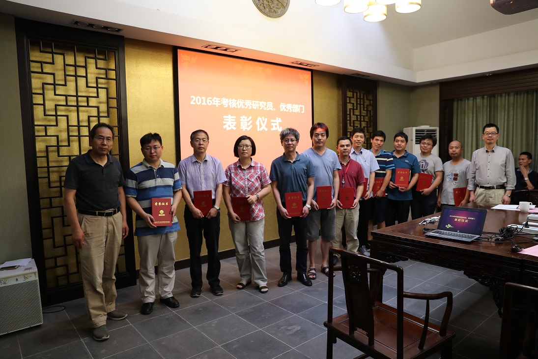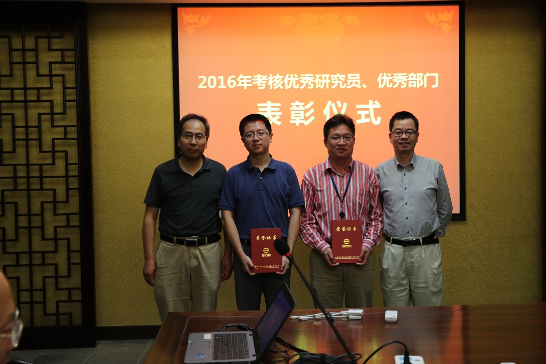 会议首先举行了2016年度考核优秀研究员、优秀研究室、优秀机关管理与支撑部门颁奖仪式。陈卫标副所长宣读了表彰决定。李儒新、陈卫标向考核优秀三级研究员(王俊、李学春、侯霞、曾志男、蔡海文(按姓氏笔画排序))、考核优秀四级研究员(冯衍、司徒国海、吕德胜、齐红基、孙建锋、杜鹃、陈树彬、魏劲松(按姓氏笔画排序))、考核优秀研究室(空间激光信息技术研究中心)、考核优秀机关管理与支撑部门(所办公室)分别颁发了证书。随后,会议举行了《党风廉政建设责任书》《安全工作责任书》签订仪式