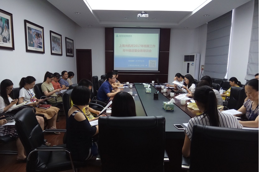 7月17日下午,上海光机所2017年度档案工作年中推进暨业务培训会在1号楼108会议室举行,各研究室、机关各部门专兼职档案管理人员参加了会议。会议由所办公室主任屈炜主持。