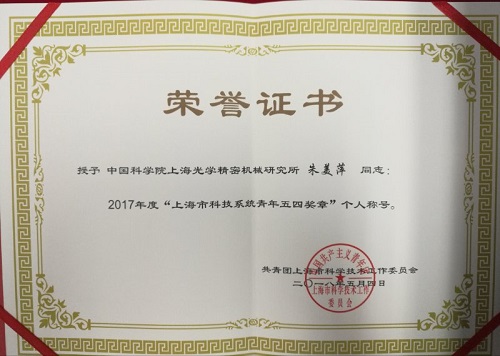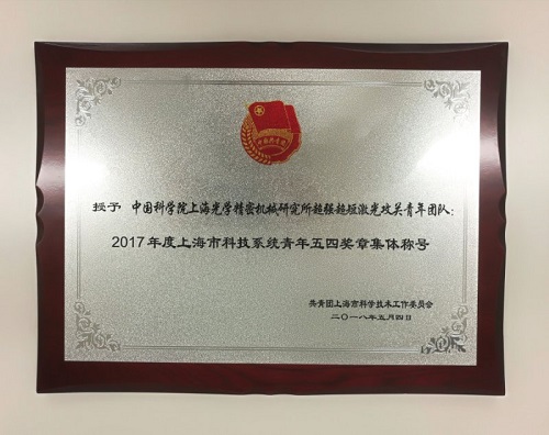 上海光机所青年团队和个人本年度获“五四”表彰数创历年最高,上海光机所团委首次获“五四红旗团组织”荣誉。(所团委供稿)