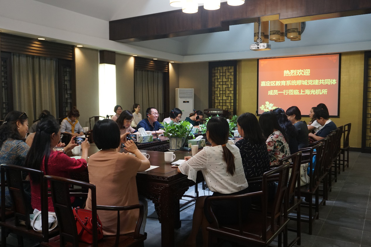 9月26日下午,嘉定区教育系统疁城党建共同体12家成员单位的30余位教师代表来到上海光机所,开展“走进科研、学钻研、习精神”党建交流活动。上海光机所党委书记邵建达、妇委主任侯霞、综合办公室副主任沈力、团委书记金黎慧等参与了本次交流活动,交流会由所妇委委员刘浪主持。