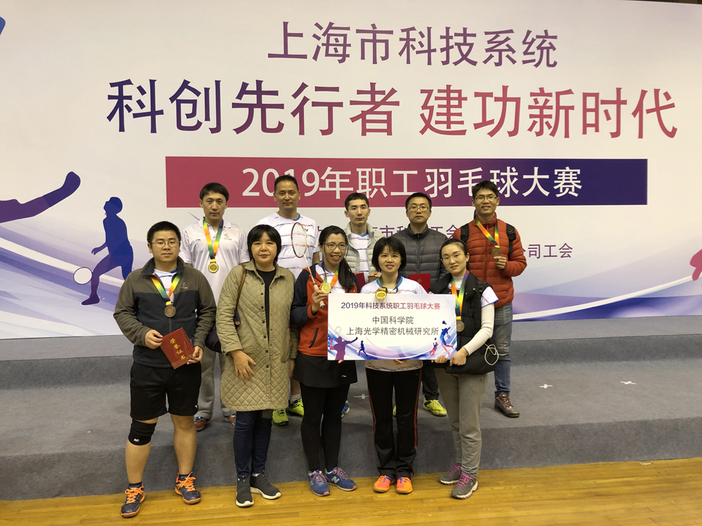 3月31日,“科创先行者、建功新时代”上海市科技系统2019年度职工羽毛球大赛在华东师范大学体育馆举行,上海光机所职工通过奋力拼搏,在多个项目中获奖,其中赵娇玲在35岁以下组别获得女单冠军、顿爱欢和沈夏组合在35岁以上组别获得混双冠军。