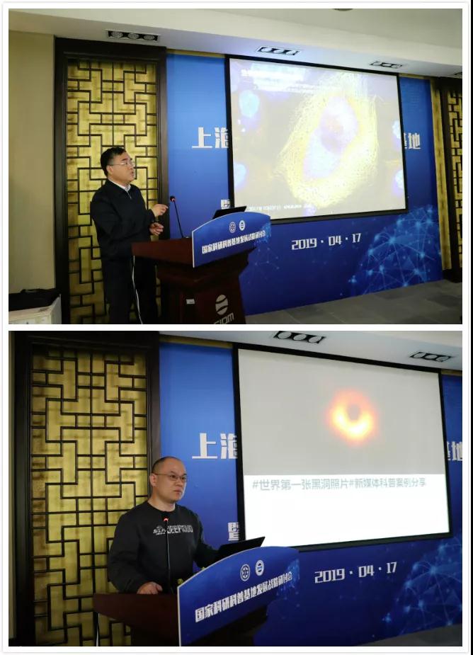 会议还特别邀请了上海科技馆王小明馆长、中科院计算机网络信息中心王闰强主任做专家报告。王小明结合上海科技馆多年来在科普影视业态的实践做了精彩报告,他表示,只有“打破界限,深度融合”才能做好科普。王闰强结合世界首张黑洞照片的热点事件,就新媒体科普做了深入解读与剖析,他认为,中科院的科研成果是最宝贵的科普资源,但想要做好高端科研资源的科普化,必须提前策划,认真谋划,权威解读,顺势推出。