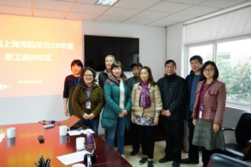 12月17日上午,中国科学院上海光学精密机械研究所2019年度职工退休仪式在1号楼206会议室举行。党委副书记、纪委书记李燕,综合办公室主任助理吴燕华,退管会副主任刘英,以及六位光荣退休的职工参加仪式。仪式由吴燕华主持。
